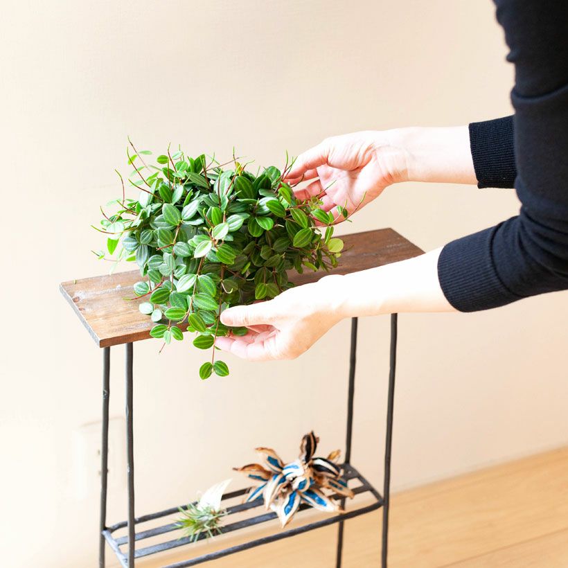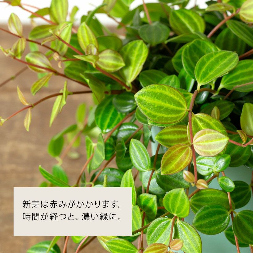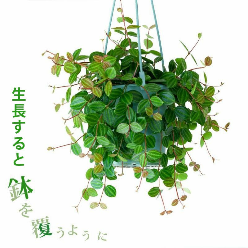 ペペロミアの中でも、暑さ・寒さに耐える品種。育てやすい植物です。 明るく風通しの良い場所に吊るしてください。多少であれば陰にも耐えます。(冬は7℃以上推奨) |