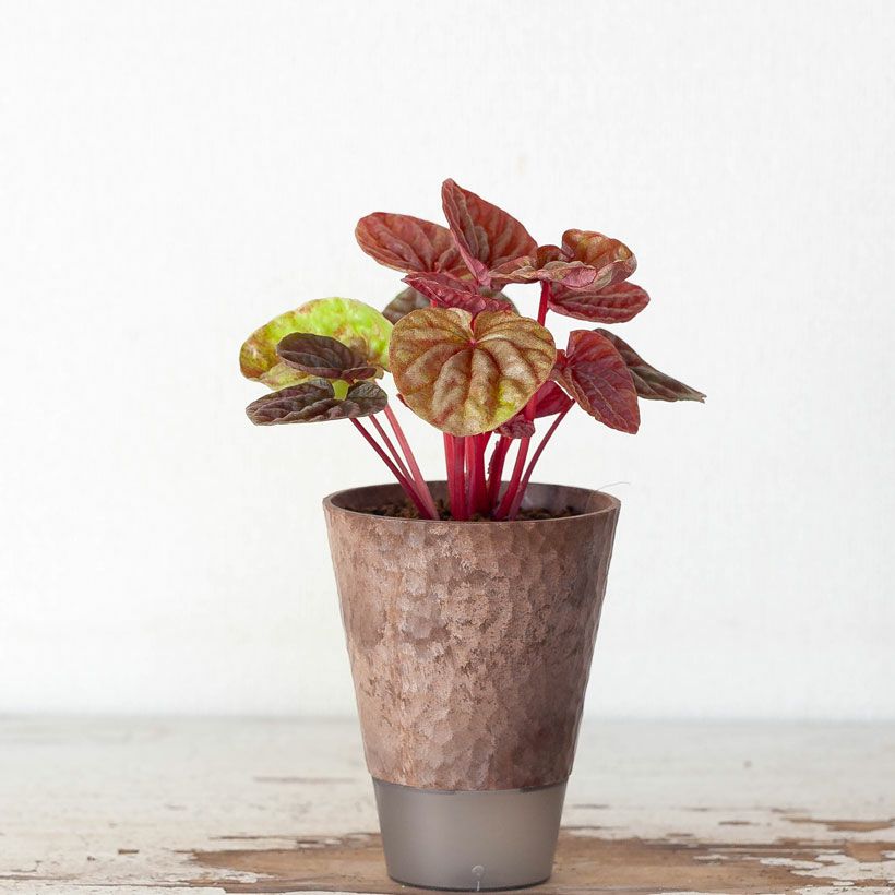 ペペロミア・ロッソペペロミアの中では比較的新しい品種。葉裏の色が鮮やかで、コントラストが抜群に美しい。
