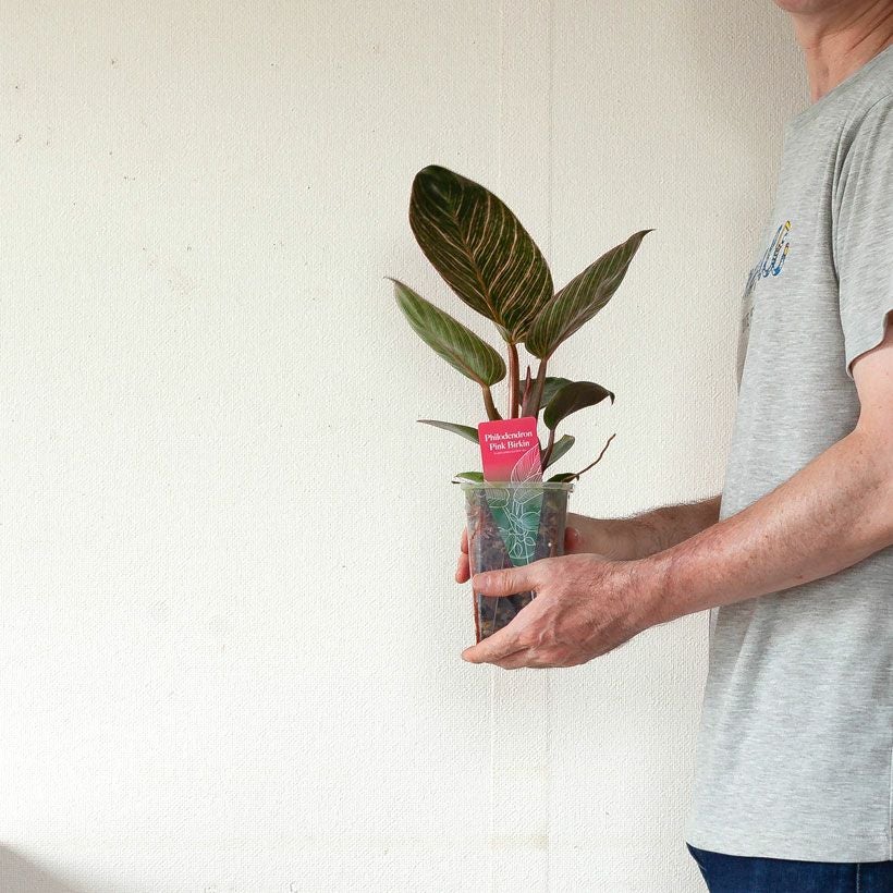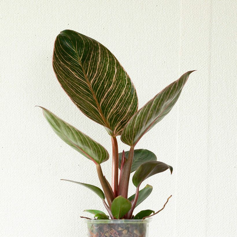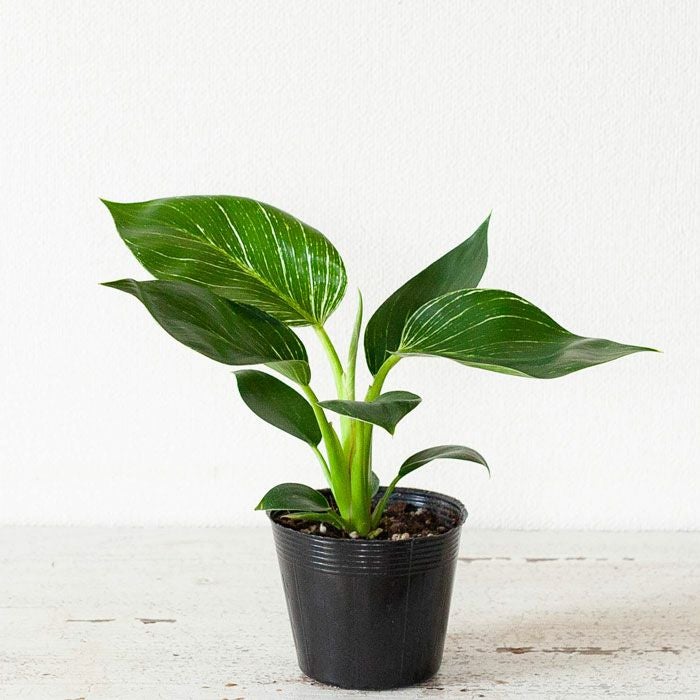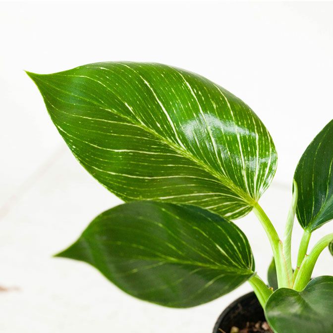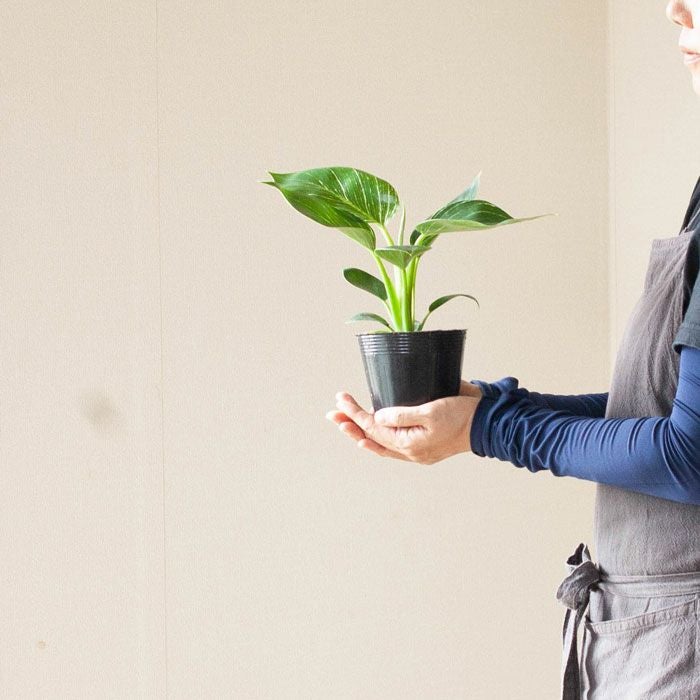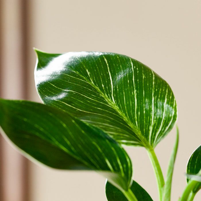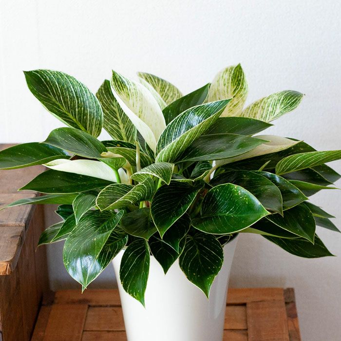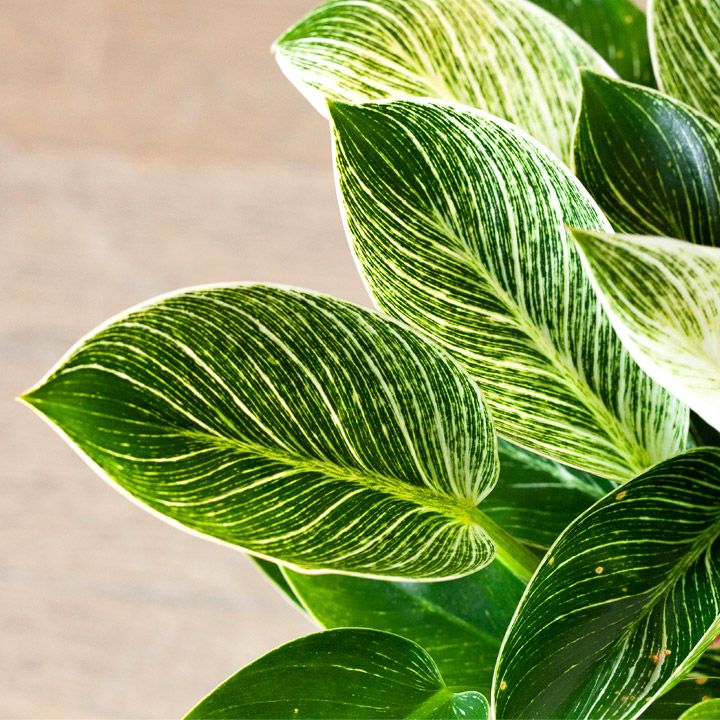 フィロデンドロンの中では、比較的新しい品種。そして人気が高いのが、この「バーキン」。株が熟成し、かつ光のあたる場所で育てていると「縞模様」がより鮮明になっていきます。