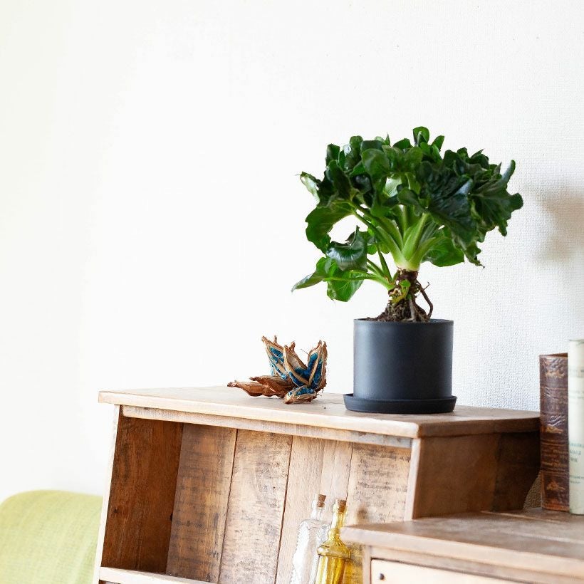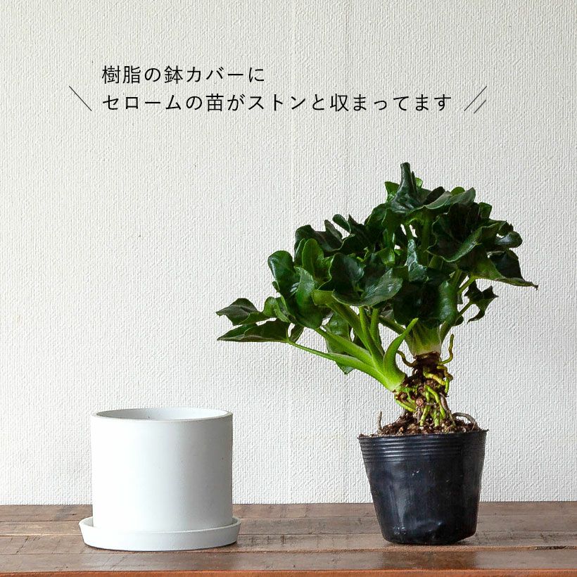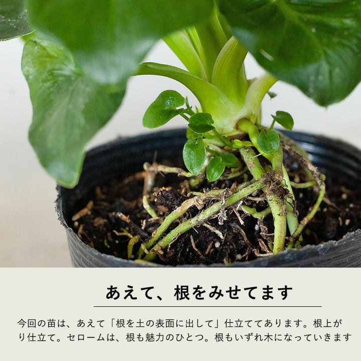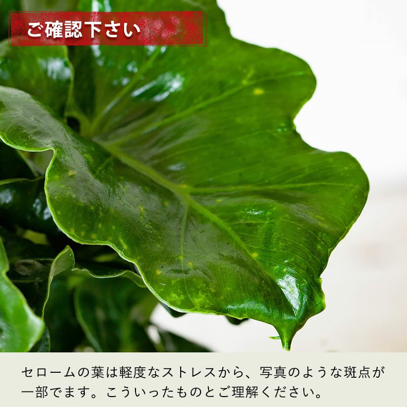 昔は大型種ばかりでしたが、最近はコンパクトな矮性種も増えてきました。幹・葉・根、どれも特徴的な大変興味深い植物です。【置き場所】セロームはフィロデンドロンの中でも、日当たりを好む品種です。耐陰性もかなり強く丈夫ですが、光があった方が広がるのを防げしまった株になります。