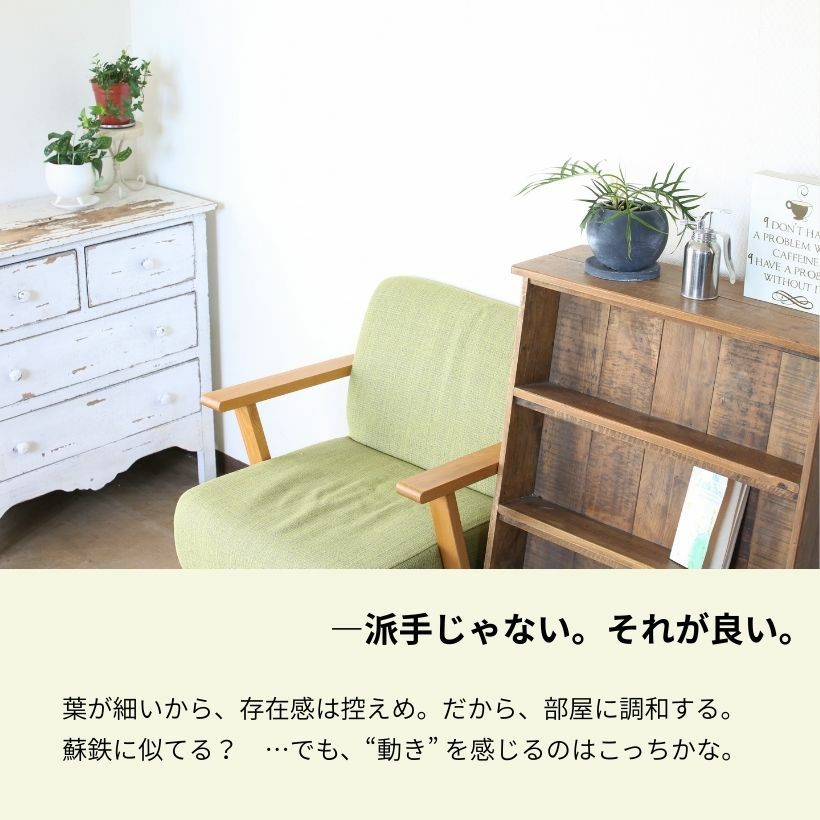【置き場所】耐陰性もありますが、光をしっかりあてて育てたい植物です。葉が長く伸びるので、光をしっかり当てて育てた方が軸がしっかりします(但し室内から急に屋外に出すと葉が焼けます。日照変化には気を付けてください)