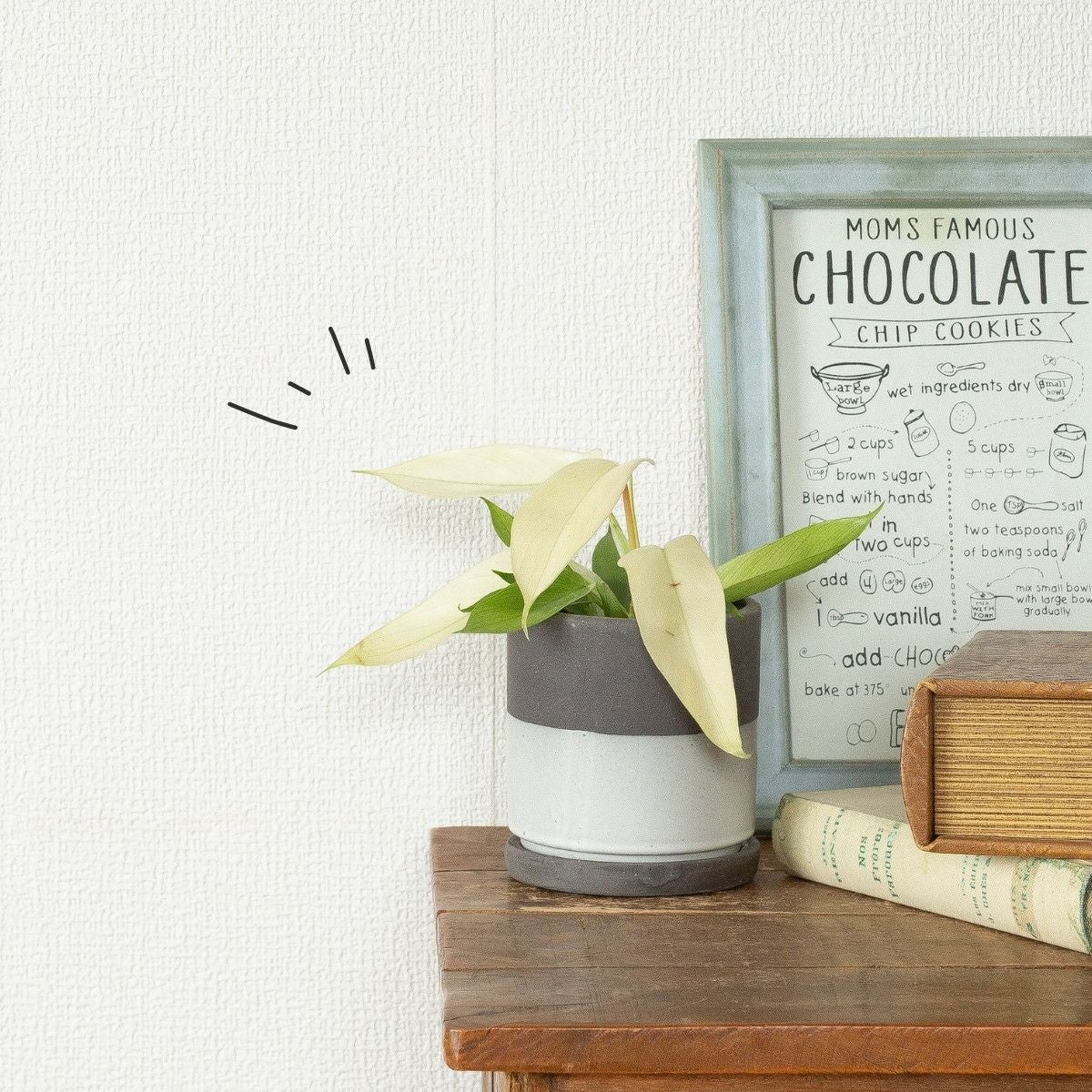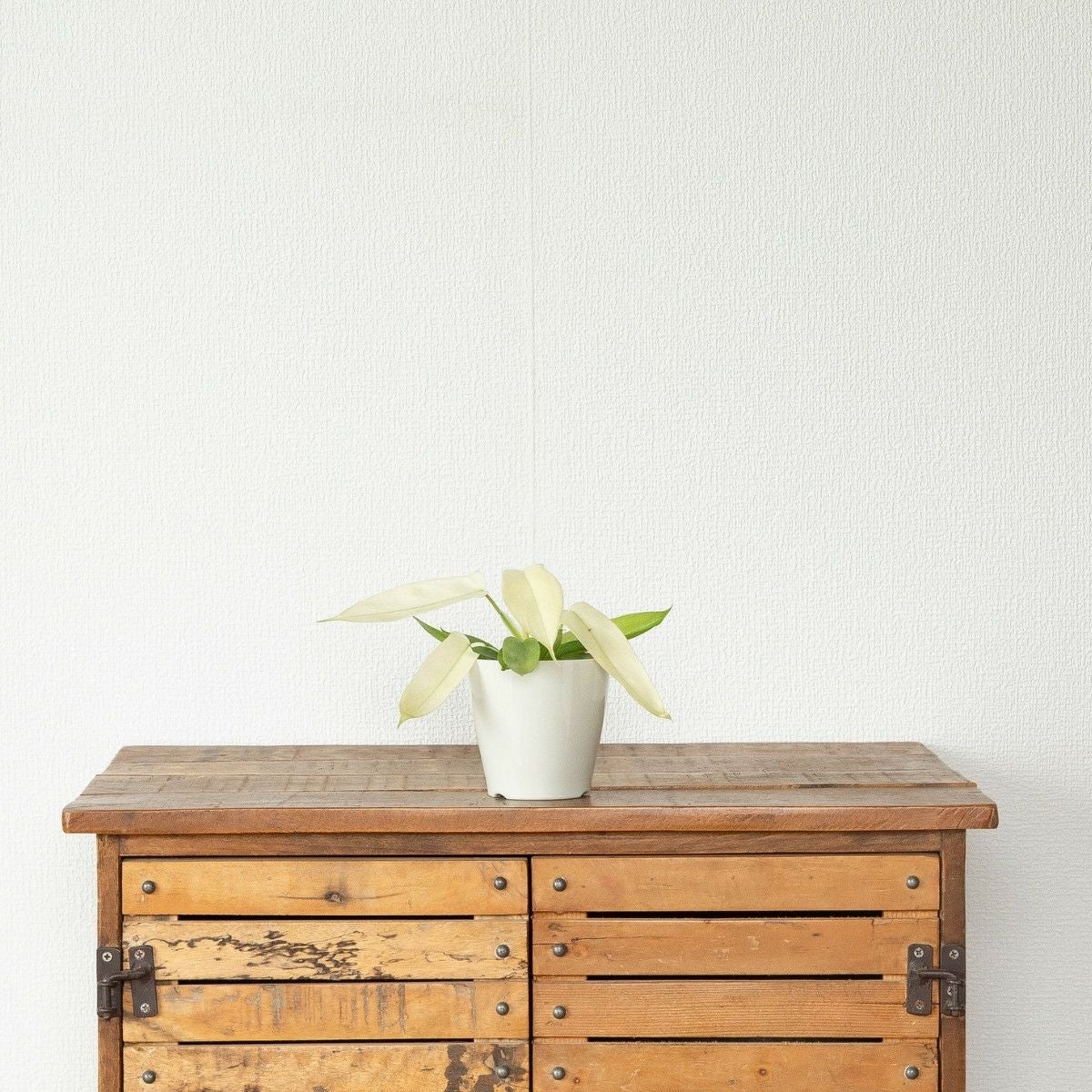 【模様(斑の出方)】バーキンの特徴は、なんと言っても白い縦じまの斑。この斑は、新芽に入ります。「ある程度、日照があること」「季節性」によって斑の出方が変化します。 家庭栽培でも白斑を楽しむことができますが、葉が小さくなってしまう傾向があります。 -