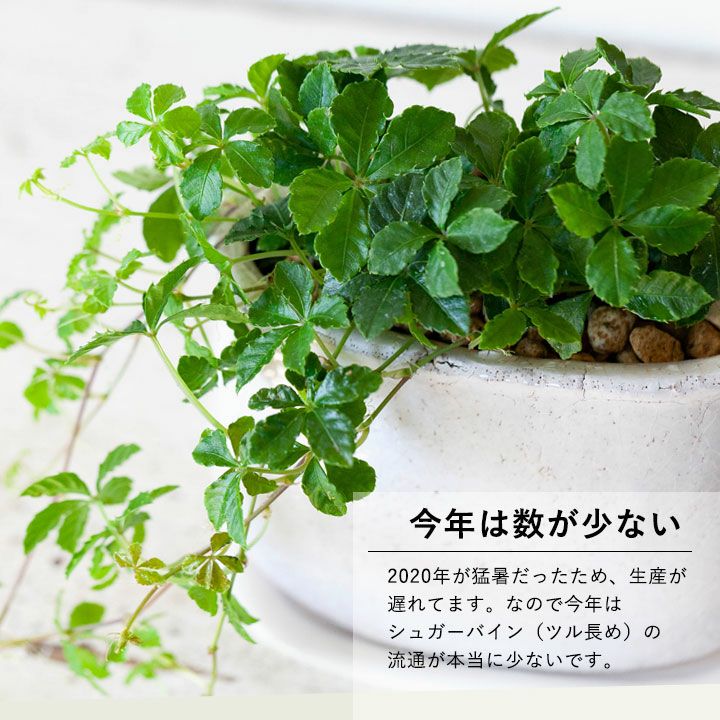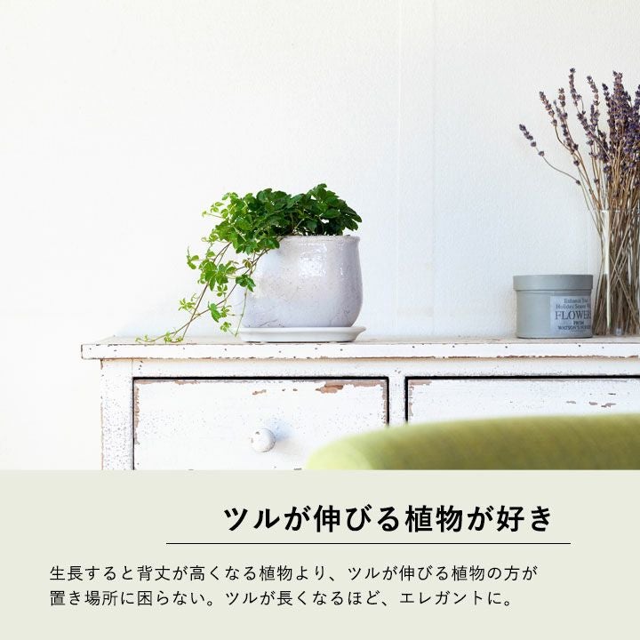 ポトス、アイビーなどツル性植物は多々ありますが、シュガーバインはツルがやらかいので優雅に垂れ下がります。