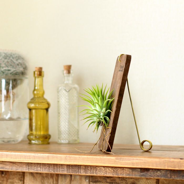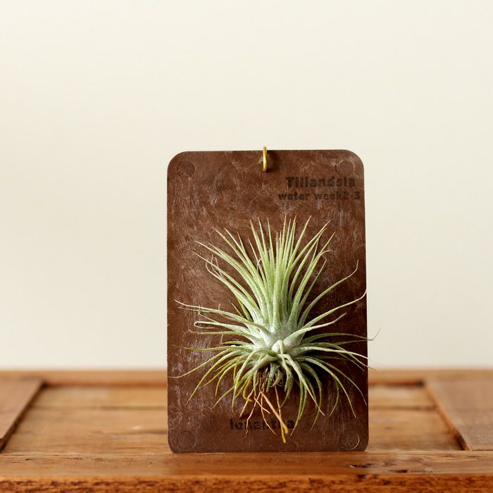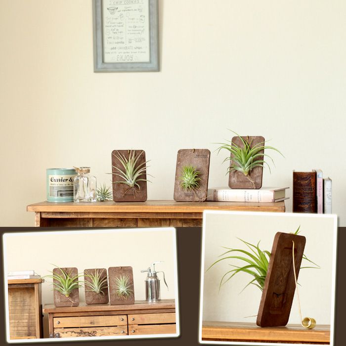 研究を重ね、辿りついたのがこのスタイル。プラスチックに木の繊維を混ぜた、風合いよいプレートにエアープランツを貼り付けました。