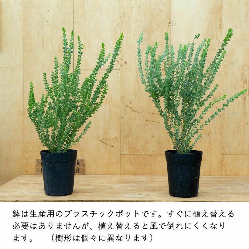 他の画像を見る ハーブのように香りがよいユーカリの小型品種! ユーカリ・リトルハート(ウェブステリアナ) 価格 ¥ 1,330 税込 1年以内の入荷可能性あり 入荷待ち +説明 ユーカリ初心者さんはコレ!グニーユーカリ。ユーカリグニーは挿し木ではなく実生で生産されるため、葉色や葉の形など、個体差があります。育てやすい4号鉢サイズです。大きくしたくない人は小さい鉢で!