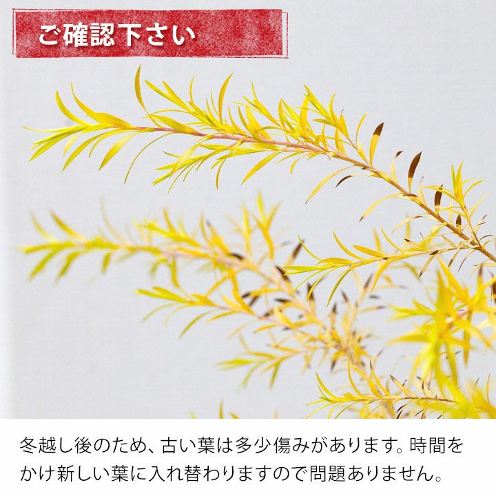 他の画像を見る 黄金色の葉が美しい人気樹。このサイズの販売は珍しい! メラレウカ・レボリューションゴールド(限定14鉢)※同梱不可商品です 価格 ¥ 5,980 税込 入荷未定(可能性はあり) 入荷待ち