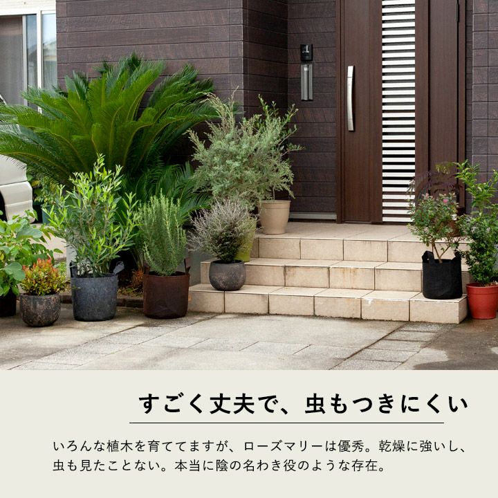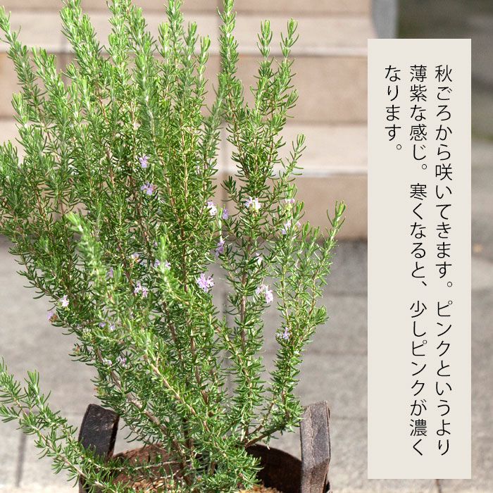 他の画像を見る 地味だけど、いい木なんです!お勧め! ローズマリー’マジョルカピンク’大苗 価格 ¥ 3,680 税込 半年以内の入荷可能性あり 入荷待ち +説明ローズマリーと聞くとハーブを連想しますが、植木としてもおすすめなんです!今回の商品・マジョルカピンクは21cmポットの大株。花が長く楽しめます。寄せ植えなら匍匐性のローズマリー。1株で庭木のように楽しむなら立性品種を推薦します!