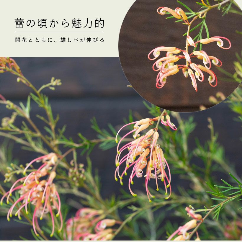 他の画像を見る 四季咲きで、耐寒性もある品種! 初めての「グレビレア」なら、センパフローレンスがお勧め! 価格 ¥ 3,630 税込 春と秋に入荷 入荷待ち +説明 オーストラリア原産、オージープランツの中でも人気のグレヴィレア。中でも初心者さんにはセンパフローレンスがお勧め!可愛らしいピンク(オレンジ)の花が咲きます。グレビレアの中では耐寒性が強い品種です!