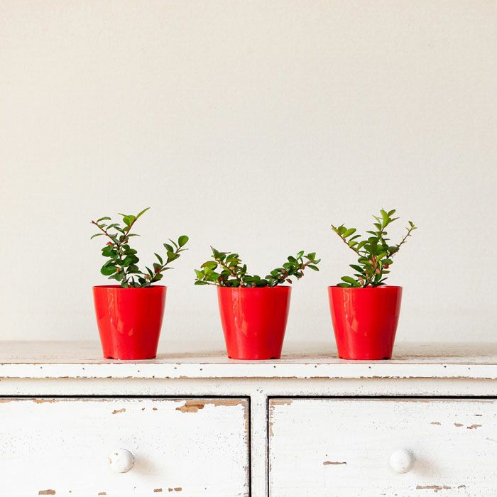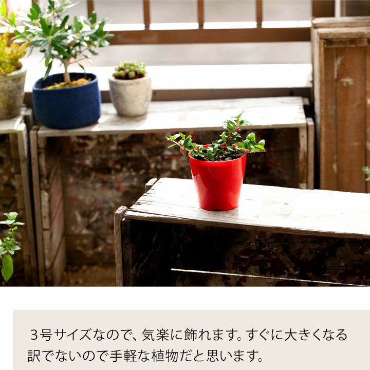 ※3号ポット苗が、赤いプラスチックの鉢カバーにストンと収まってます。半年~1年くらいは今の鉢のままでも大丈夫ですが、一回り大きい鉢に植え替えても大丈夫です。