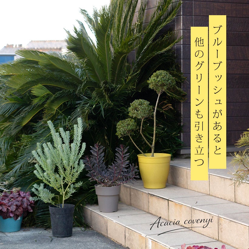 写真はブルーブッシュアカシアの10号鉢サイズ(背丈180cm)を使用しています。