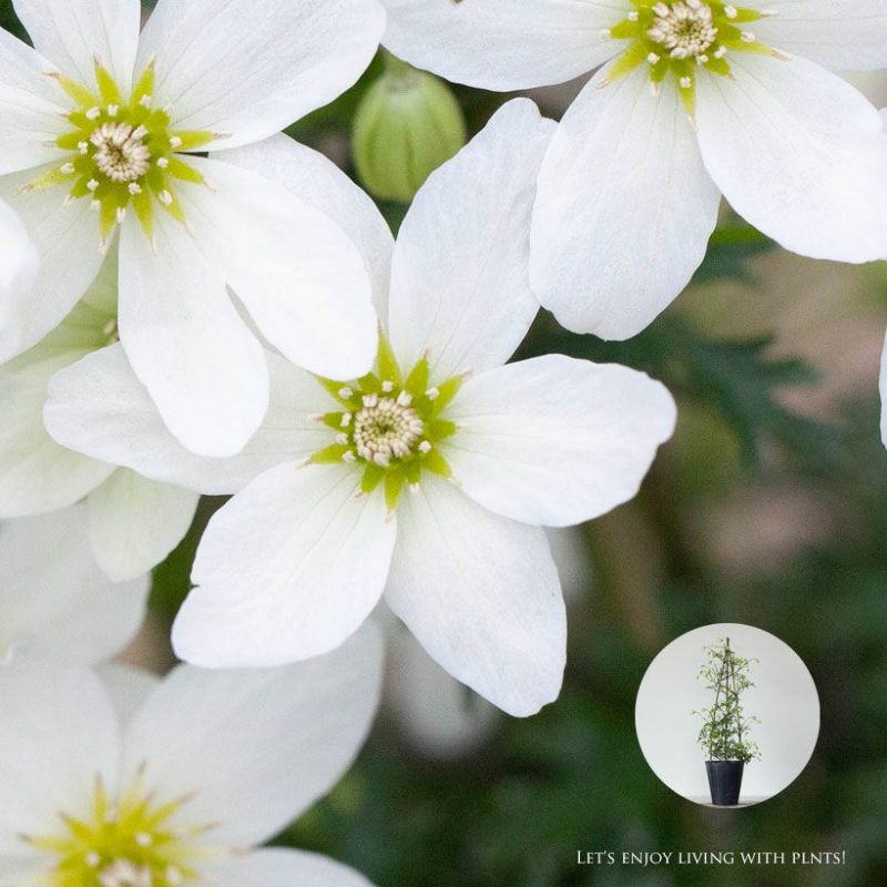 カートマニージョーはクレマチスの中でも、鉢植えで楽しみやすいタイプ。成長がゆっくりで、ツルもからみにくいので取扱いが容易。アレンジしやすい品種です!