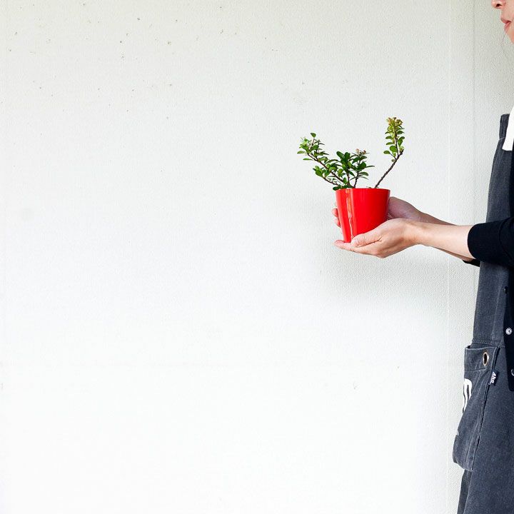 ※3号ポット苗が、赤いプラスチックの鉢カバーにストンと収まってます。半年~1年くらいは今の鉢のままでも大丈夫ですが、一回り大きい鉢に植え替えても大丈夫です。
