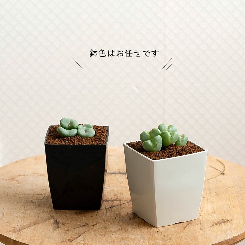 ・品種はお任せとなります。写真にない品種も商品に含まれます。(複数ご注文を頂いた場合は、可能な限りとなりますが、違う品種を入れるようにします) ・鉢の色は白か黒のお任せとなります。 ・葉には傷があったり、「花が終わった跡」があったりする場合がございます。 コノフィツムにおいて、これに関してはどうしても仕方ないこととなります。予めご了承くださいませ。 |