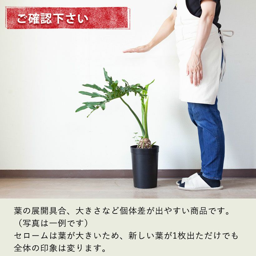 写真は見本です。植物ですので、樹形は個々に異なります。 セロームは葉が大きいので、新しい葉が1枚出ることに、全体の印象が少しずつ変わっていきます。株によっては写真より小さく感じるのものもありますが、 一時的なものとなります。1~2枚葉が出ると印象が変わります。 植物に付き葉や、葉の鞘には多少傷があります。新しい葉もでますので、予めご了承ください。 (古くなった葉、傷んで見栄えが悪い葉は切ってしまい、新しい葉と更新していく植物です) |