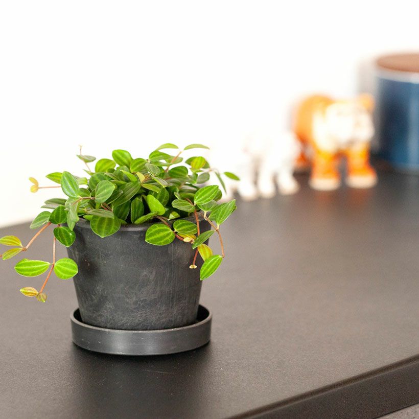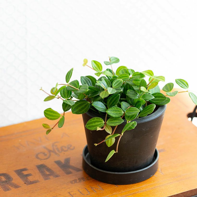 今回は「陶器鉢」ではなく、樹脂の鉢を採用しました。ミニ観葉って、サイズ的にも価格的にも「手軽さ」が大事と思うんです。なので価格はなるべく抑えたい。