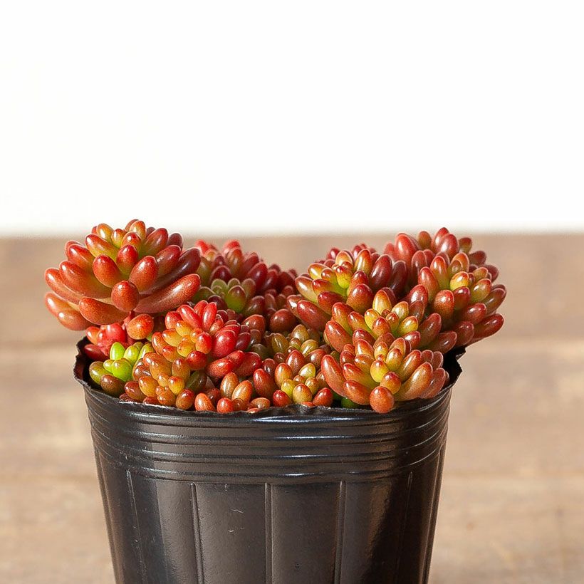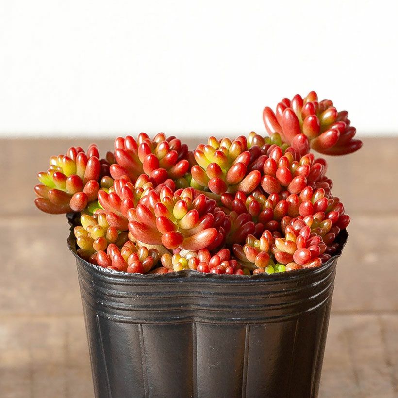多肉植物のなかでも、特に育てやすいセダム。その中で虹の玉は紅葉の色も綺麗な人気品種です。伸びすぎたら、切り戻して挿し木もできる育てがいがある品種。寄せ植えのアクセントにも最適です!