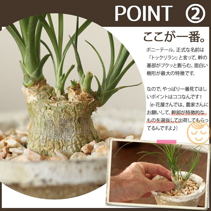 3拍子揃ったポニーテールは昔も今も、絶大な人気を誇る植物一覧。ただ最近では昔ほど家が広くなく、