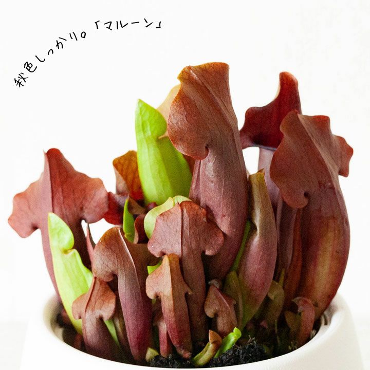 サラセニアって、秋が一番の見ごろなんです。葉が秋色に紅葉する季節。