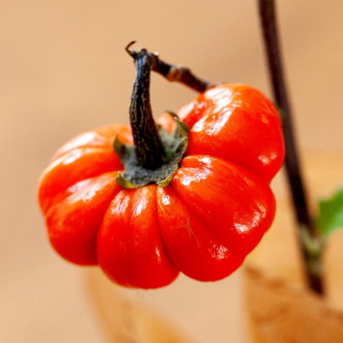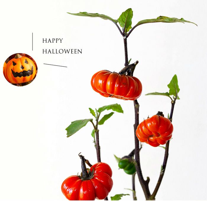 「ハロウィンの飾り付け」や「寄せ植え」にもってこいのナス科の植物。果実がオレンジ色になれば、収穫時期♪