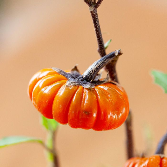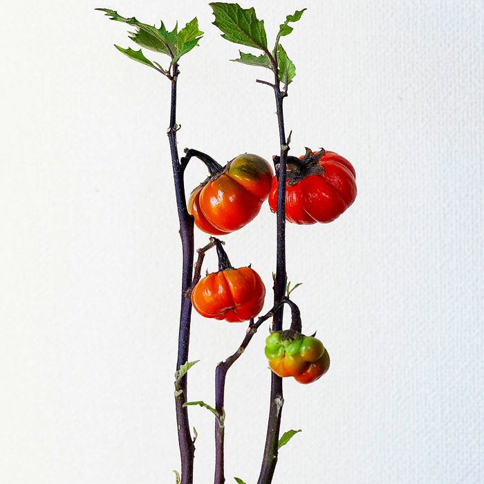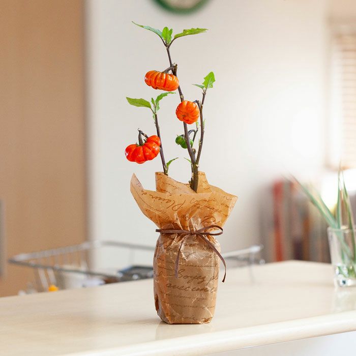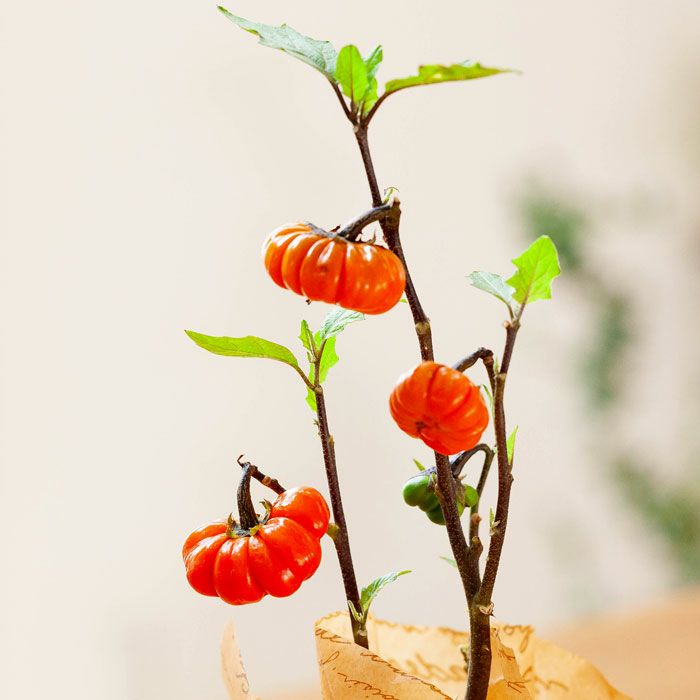 「ハロウィンの飾り付け」や「寄せ植え」にもってこいのナス科の植物。果実がオレンジ色になれば、収穫時期♪