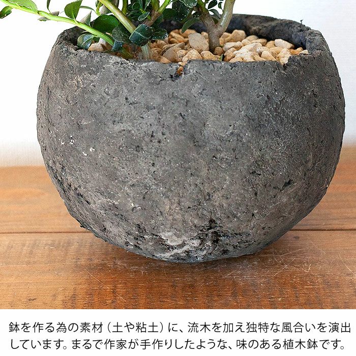 写真は見本です。樹形は1つ1つ異なります(その為、サイズ誤差が多少あります)。 植木鉢は独特な素材なため、クボミやカケがあります。こういった風合いの植木鉢であること、ご了承の上お買い求め下さいませ。 |