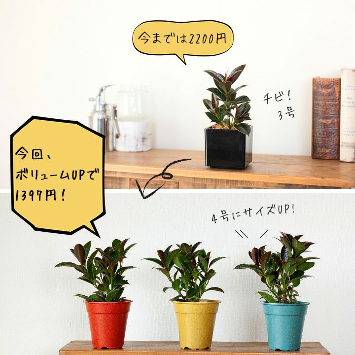 コンパクトだから気軽、丈夫で優秀なゴムの木です。