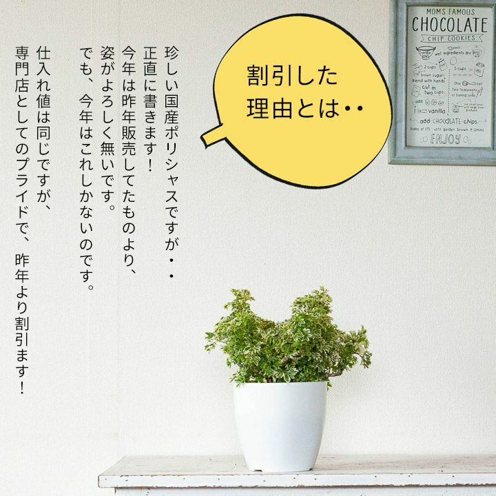 写真は見本です。 ポリシャスは環境変化や物流ストレスで、葉を少し黄色くすることがあります。(ただそれは、黄色くなった葉を取って頂ければ問題はありません) |