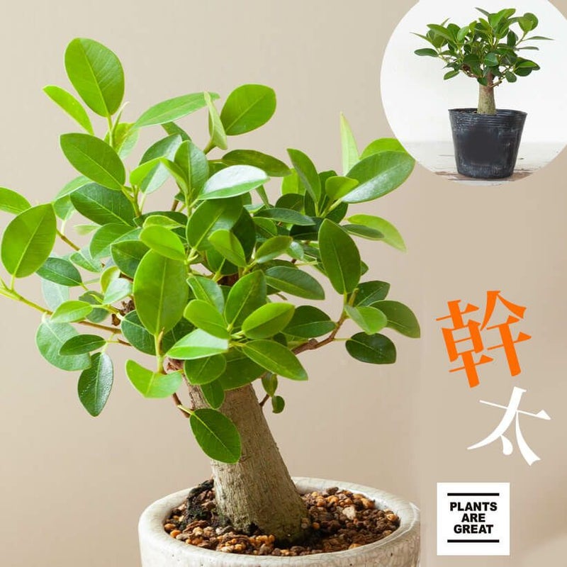 この商品、実は親木で使っていた苗なのです。 「大木」に育ったフランスゴムの枝を切り分け、ポットに植え付け(=だから幹が太い)。
