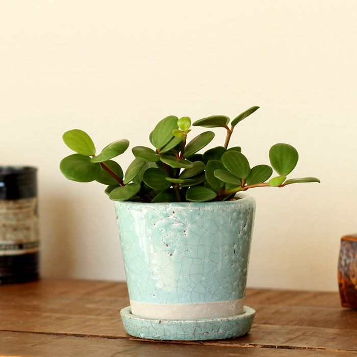 植物一覧の中でもホープは丈夫な品種です ペペロミア・ホープをキュートなカラー陶器に植えて