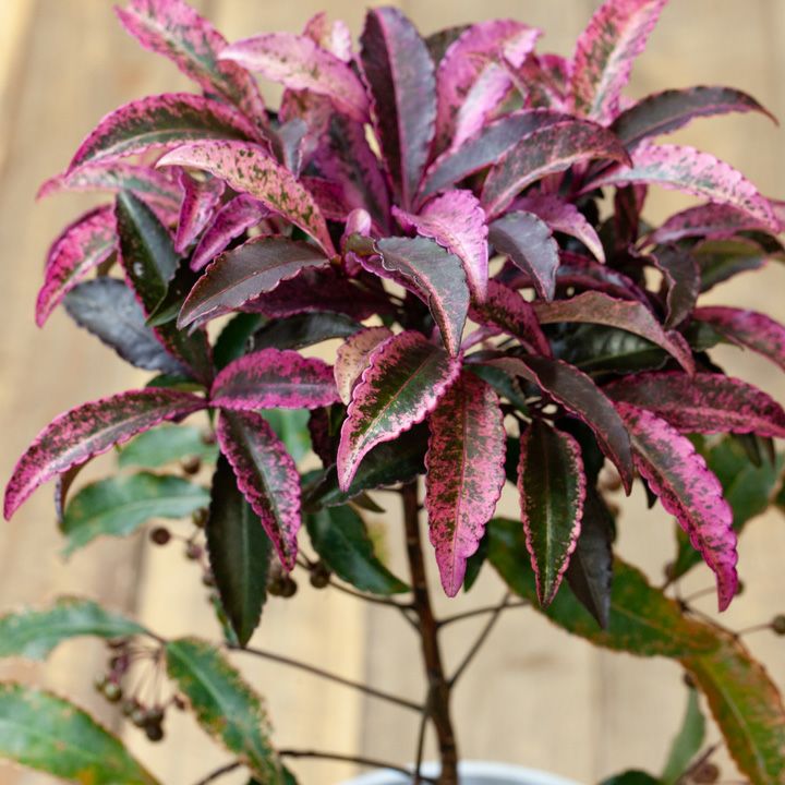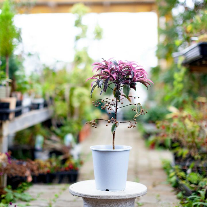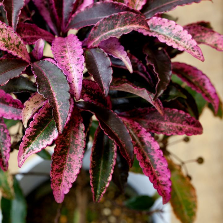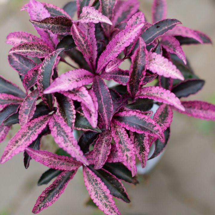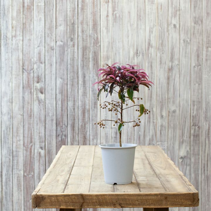 寒い時期にでる新芽の色はピンク。そして葉は黒味がかかるメタリックのような色に。なので新芽のピンクはより発色よく見えるんです。