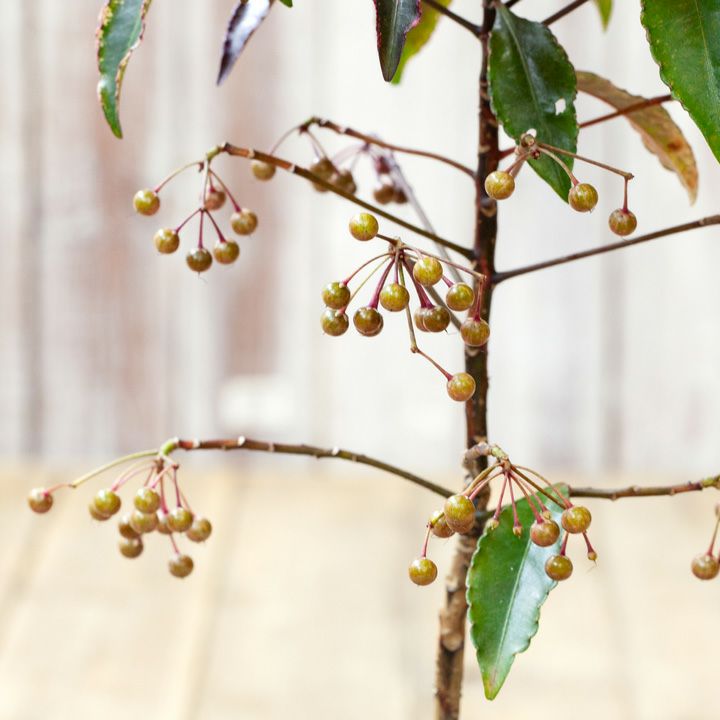 縁起物の木として、好んで庭に植えられてきた万両(マンリョウ)。今回はその万両の新しい品種「紅孔雀(ベニクジャク)」のご紹介。