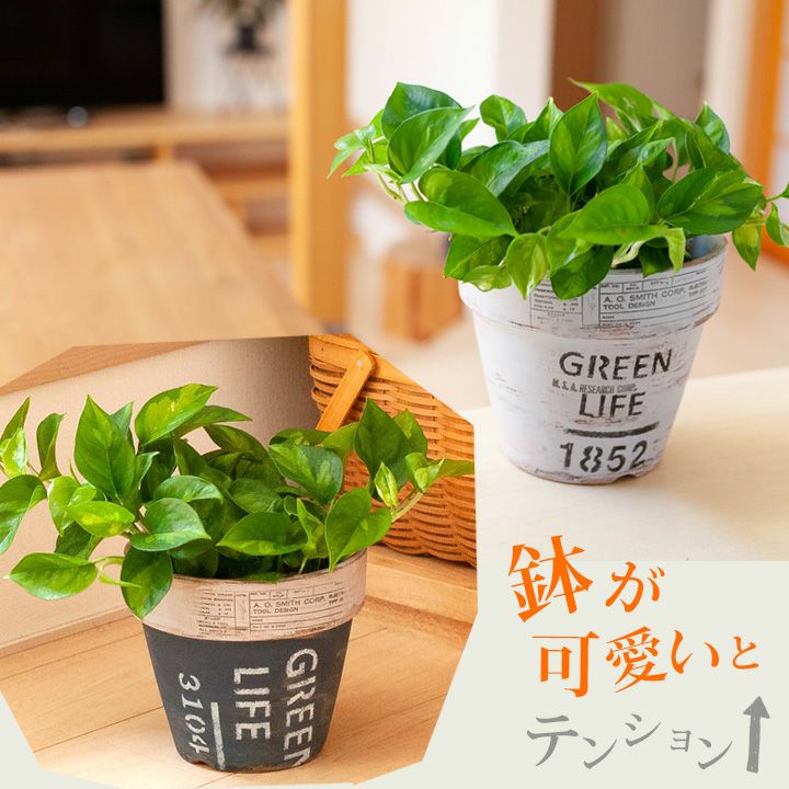 写真は見本です。季節によりツルの長さなどが若干異なります。 また葉には傷などがございます。これはどんな植物でもあることです。 植木鉢は、素焼き鉢に1鉢1鉢手作業でペイントしてます。ペイントに擦れがあったり、ロゴが傾いてたりするのは「JUNKな風合いを出す為の演出」となります。不良ではありません。 また塗料の配合、光の当たり具合により、多少色味が異なって見える場合もございます。予めご了承ください。 |