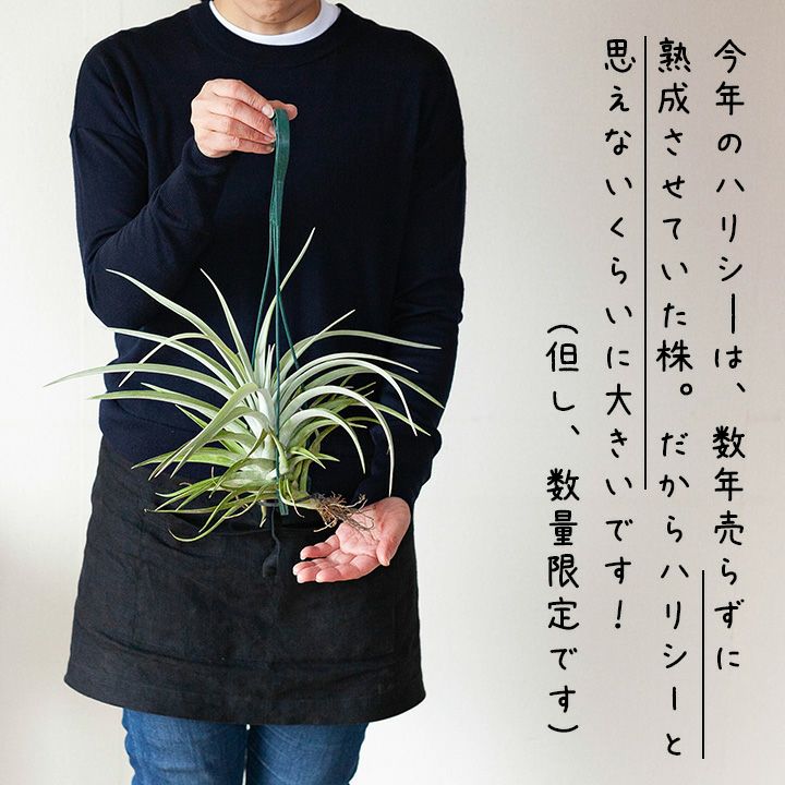写真は見本です。 「大きさ」「葉色」「姿」にはそれぞれ個体差があります。 「コンパクトな品種」のハリシーとしてはどれも大きいと思いますが、大きくなりやすい他のエアープランツ達と比べるとそれなりの大きさとなります。 「大きい」という表現で誤解が無いように記載をさせて頂きます。 また下の葉(要は古葉)には、傷があります。相当な年数をかけて生産されてますので、これはどうしても仕方ない事です。自然の姿です。 |