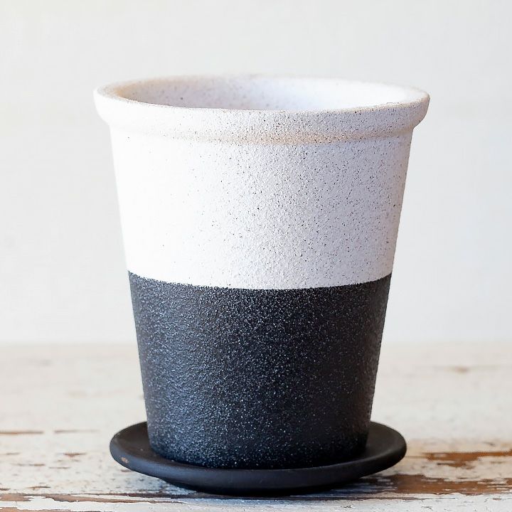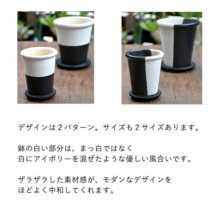 3号(もしくは2.5号)サイズの植物向け 白黒モダン植木鉢(横半分タイプM)