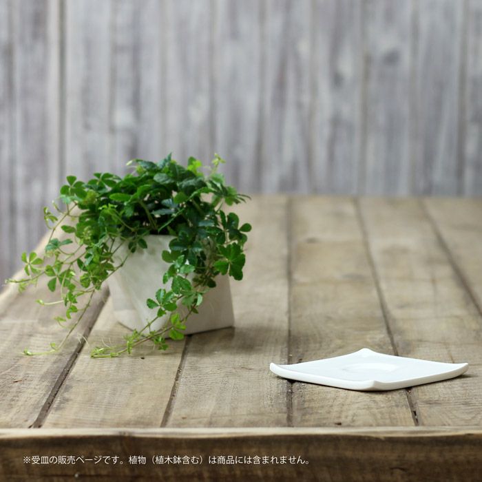 残念ながら、多面体鉢に専用の受皿が存在せず、色々なメーカーより受皿のサンプルを取り寄せ選びました。サイズはかなりジャスト。 ですので、実際にお水を与える時は別の場所で与えていただく必要があります。ただ観葉植物は概ね週に1~2度の潅水。さほど、わずらわしくはないと思います。 また潅水後はどうしても鉢の底が濡れます。ですので、こういった受皿でもあると便利です。 |