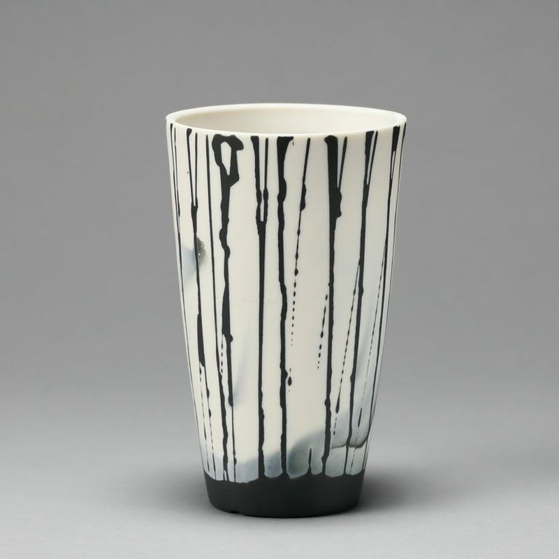 2号~3号サイズの植物向け 雨を降らしたような。作家さんモダンPOT白×黒ライン(7.5cm)