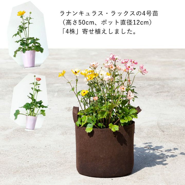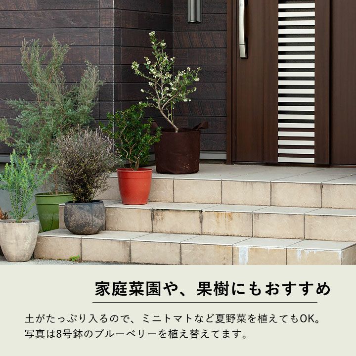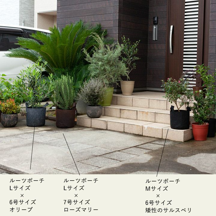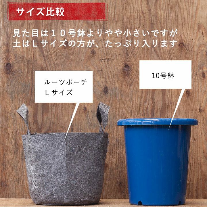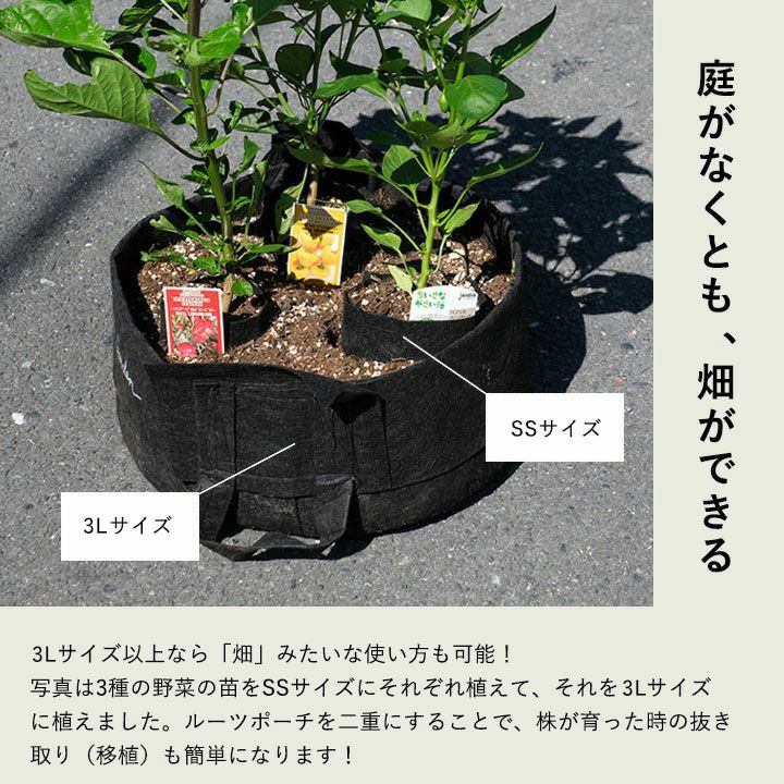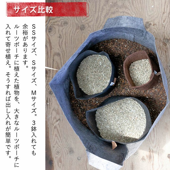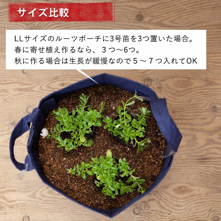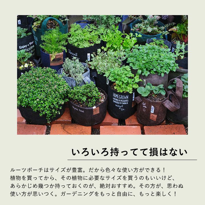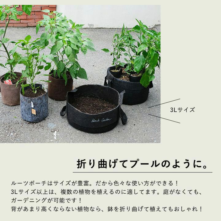 ルーツポーチはサイズ・バリエーションが豊富。 何枚かストックしておくと、今まで以上に園芸LIFEが楽しくなります!「苗の数」や「色味」によって鉢を細かく選べます。