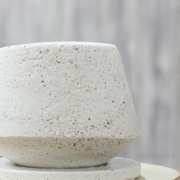 粘土に含まれる小さな砂模様が浮き立つナチュラルな鉢肌。小さな鉢ですが鉢肌が薄いので、土を崩せば3号植物でも植えることができます。