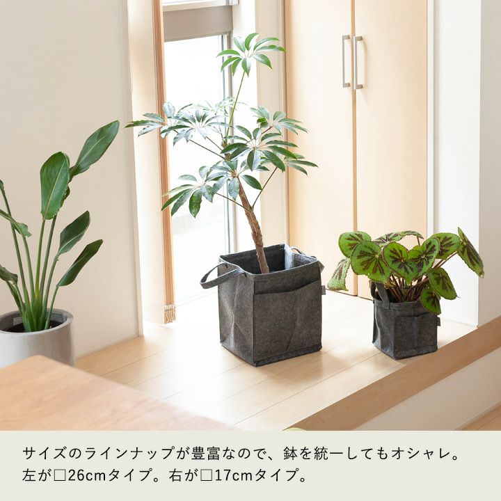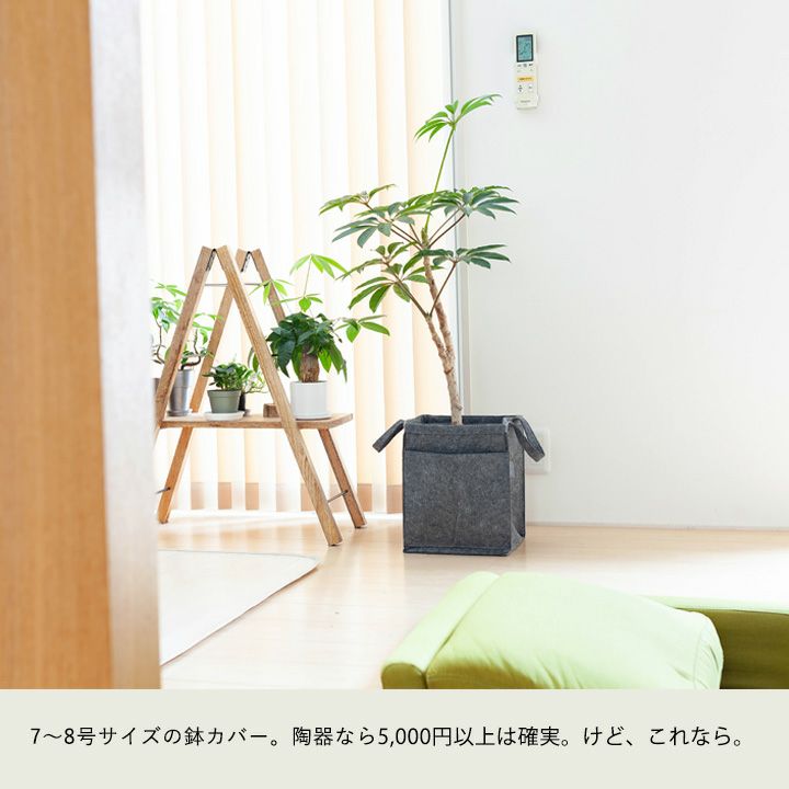 他の画像を見る 8号サイズ(もしくは7号サイズ)の植物向け バッグ職人がプロデュースした鉢カバー□26cm×高さ32cm 価格 ¥ 1,683 税込 +説明緑と暮らすサステナブルなインテリア。bag職人の栗田敬子さんがプロデュース、おしゃれで使い勝手がよい鉢カバーです。受皿もセットになってて、あとは植物を入れるだけ。植え替えることなく、植物を簡単にドレスアップできます!