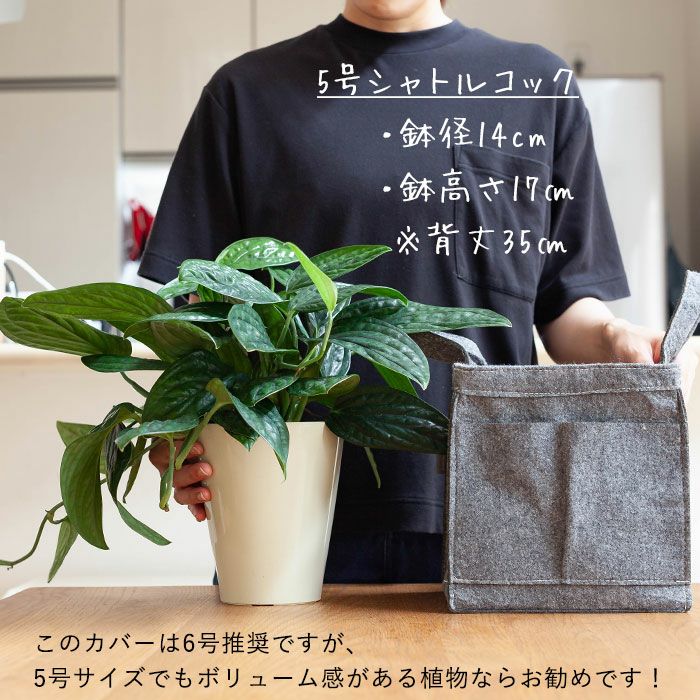 他の画像を見る 5号サイズの植物向け バッグ職人がプロデュースした鉢カバー□17cm×高さ19cm 価格 ¥ 924 税込 +説明緑と暮らすサステナブルなインテリア。bag職人の栗田敬子さんがプロデュース、おしゃれで使い勝手がよい鉢カバーです。受皿もセットになってて、あとは植物を入れるだけ。植え替えることなく、植物を簡単にドレスアップできます!