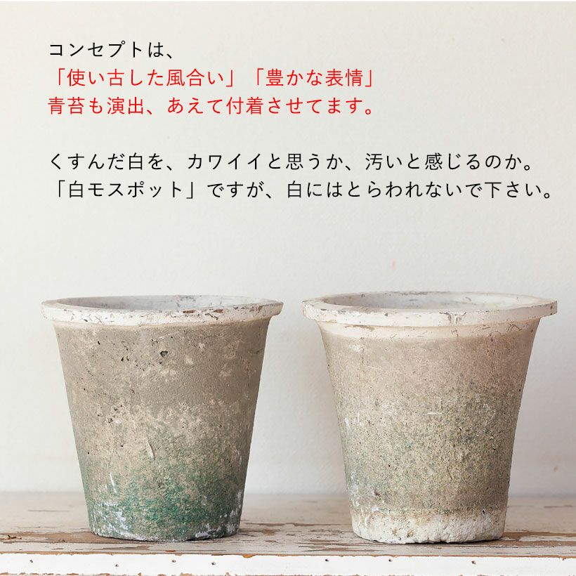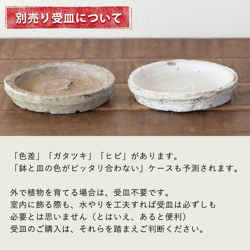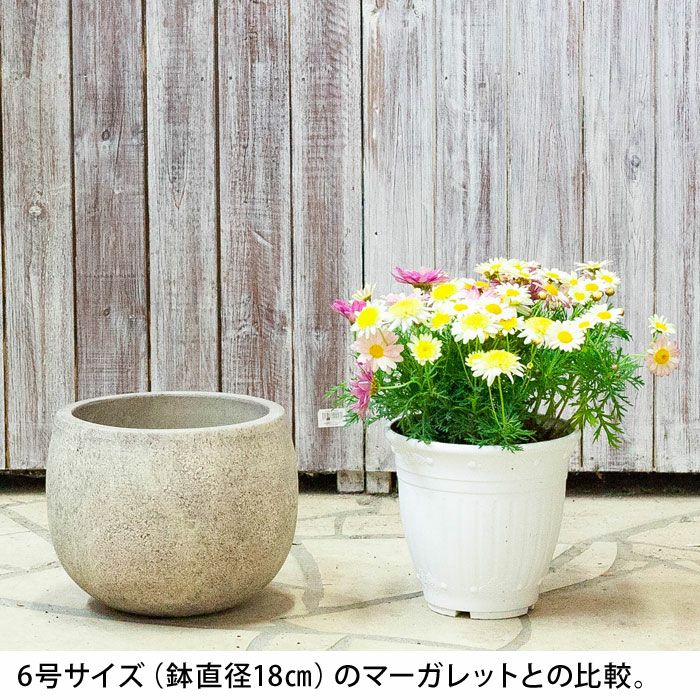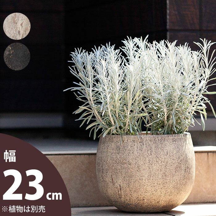 他の画像を見る 3号(寄せ植え)~5号サイズの植物向け 石のような質感。アウトドア向けペイントテラコッタ(丸)(23cm) 価格 ¥ 3,938 税込 +説明石鉢のような、ズッシリとしたシルエット。ザラザラっとした鉢肌。石の鉢はおしゃれですが、重すぎて実用面は大変。対しこちらの商品は、テラコッタにペイントを施した植木鉢。重たいですが、一人でも容易に移動できます。