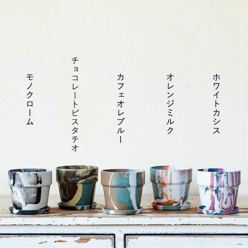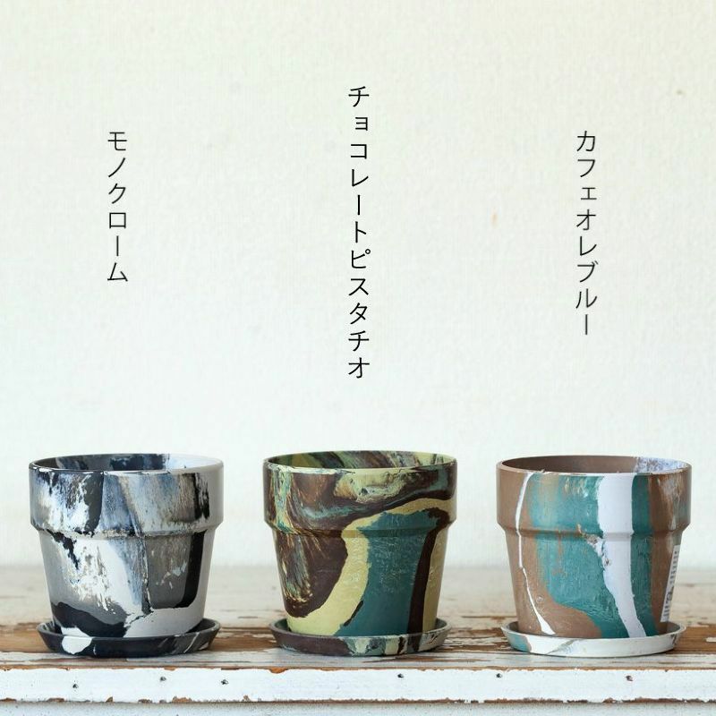 珍しい、マーブル模様の植木鉢。