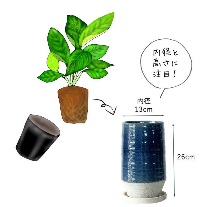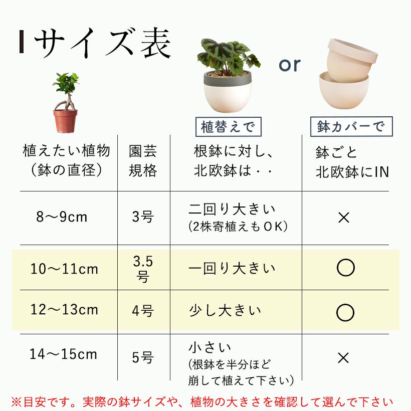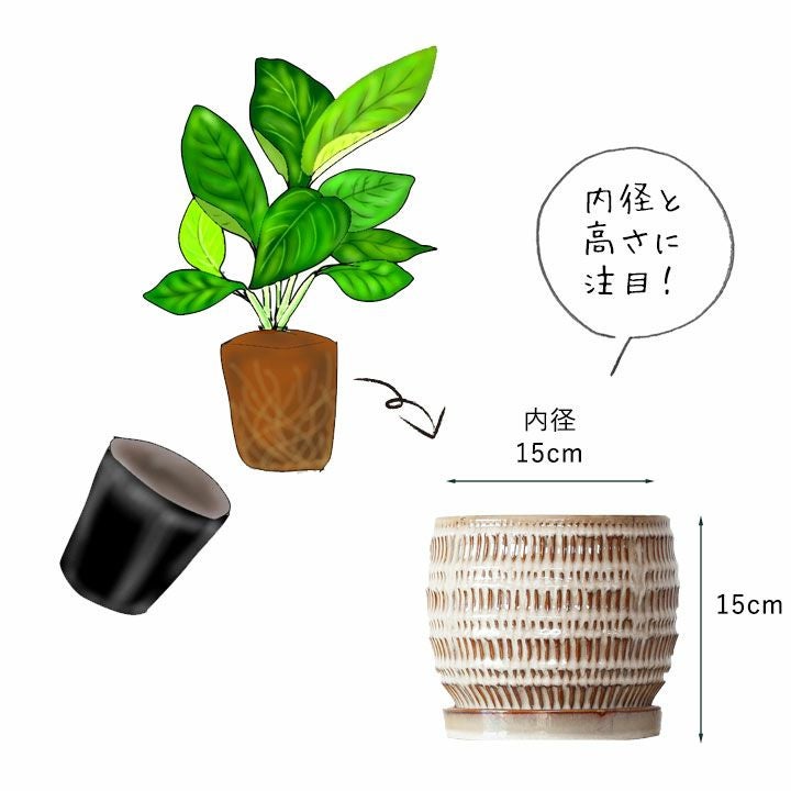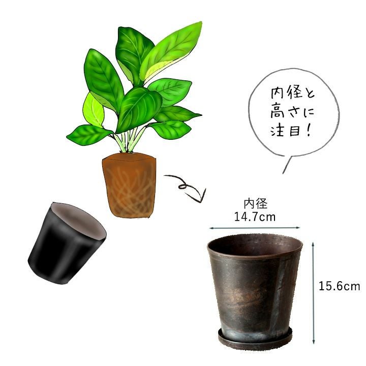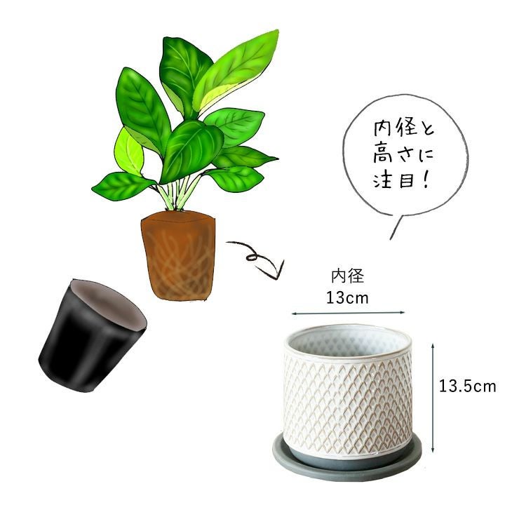 植え替えたい植物の根鉢より、1~3cmくらい大きい鉢を選ぶのが基本です。