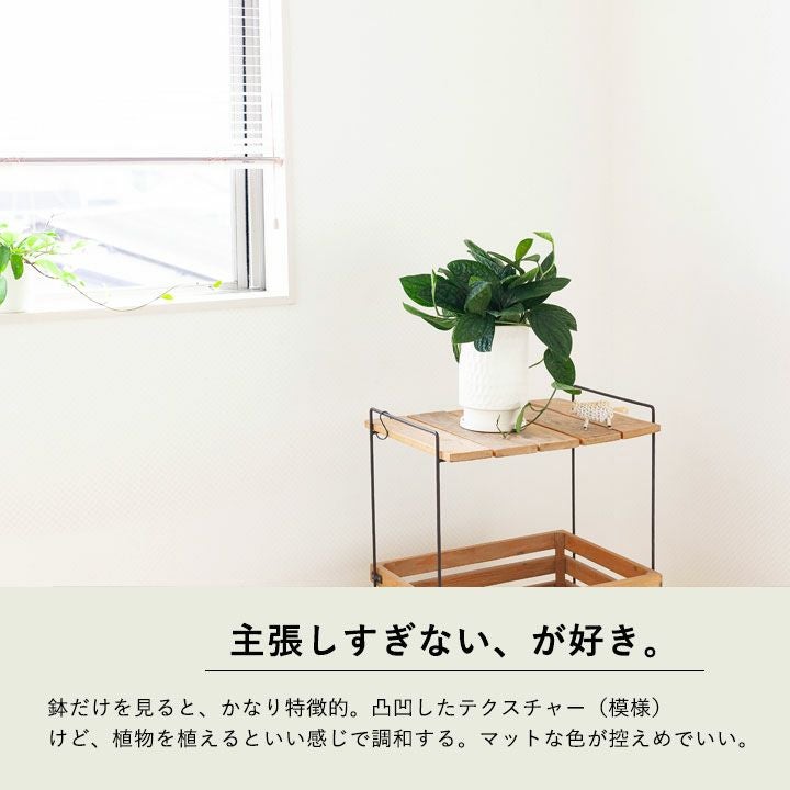 ※植物のボリュームによっては(もしくは外の植物は)、もう少し大きい鉢をチョイスされても良いと思います。