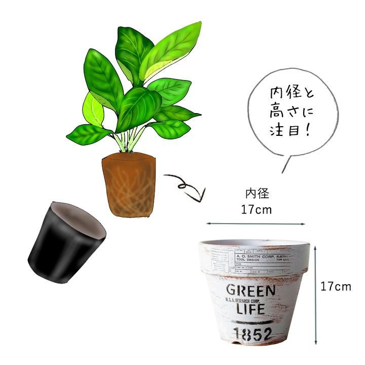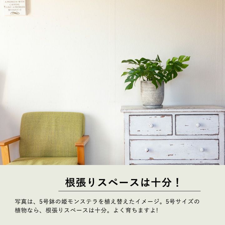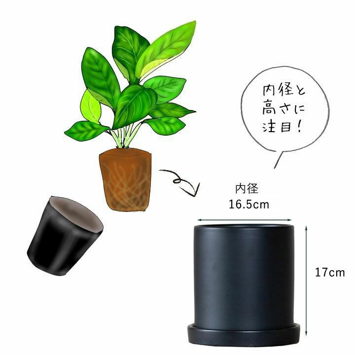 ※植物のボリュームによっては(もしくは外の植物は)、もう少し大きい鉢をチョイスされても良いと思います。