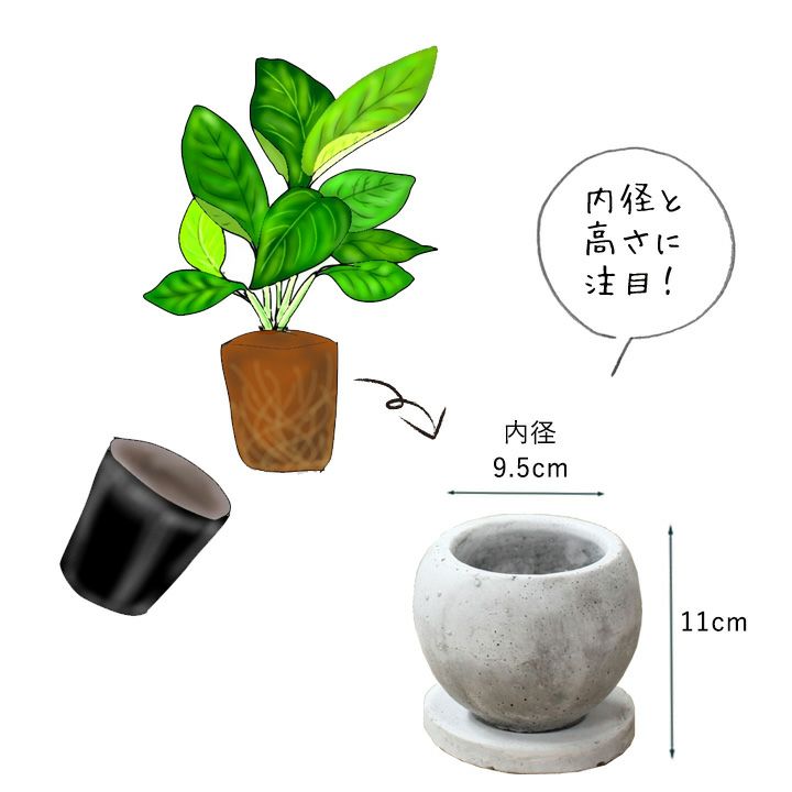 植え替えたい植物の根鉢より、1~3cmくらい大きい鉢を選ぶのが基本です。