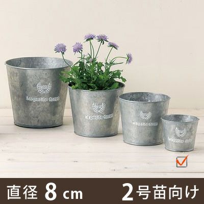 シリーズで揃えると、より可愛くなります! ブリキ鉢(2号苗用)