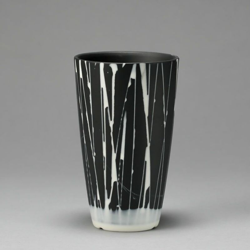 2号~3号サイズの植物向け 雨を降らしたような。作家さんモダンPOT黒×白(7.5cm)