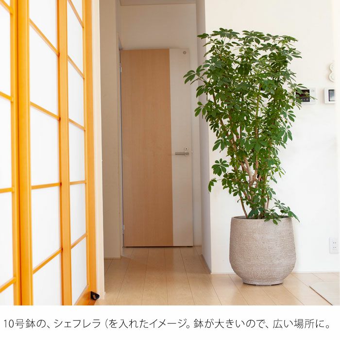 ただ「10号サイズの植物」と言っても、背丈はマチマチ。低いものもあれば、高いものもあります。広いスペースで存在感を発揮するなら・・・。なるべく背が高い(2m以上の)植物を選ぶといいと思います!