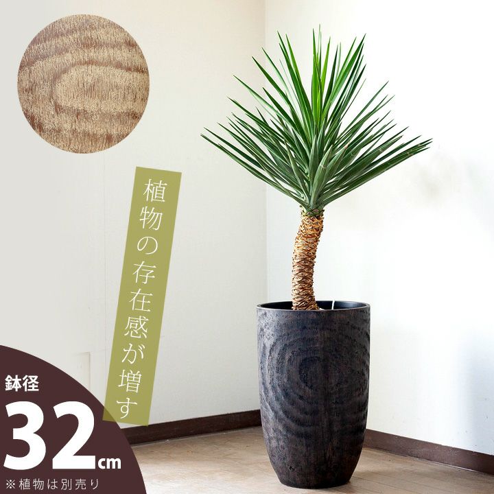 ただ見ての通り、芸が細かい。鉢の表面には木を削ったような、テクスチャー模様が。だから合成樹脂ならではの「安っぽさ」は全くしない。むしろ、リッチな印象。